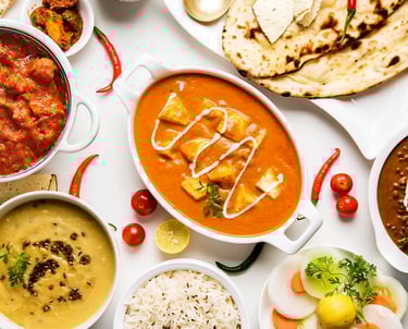 Dishes are built around staple ingredients such as rice, lentils, vegetables, and wheat flour, with vegetarian and vegan options widely available, our ingredients are widely sourced to meet its first quality culinary flavors.